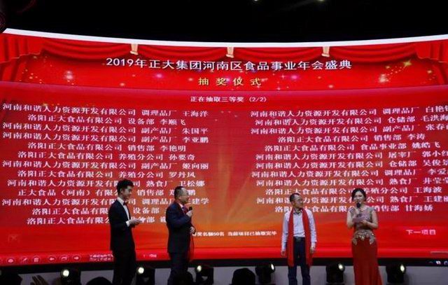 2019年1月21日,“龍頭騰起攬全月,鴻鵠展翅傲中原”——正大集團(tuán)河南區(qū)食品事業(yè)2019新春年會(huì)在洛陽(yáng)東華大酒樓盛大召開(kāi)。正大集團(tuán)農(nóng)牧食品企業(yè)(中國(guó))副董事長(zhǎng)王鴻章、正大集團(tuán)河南區(qū)食品事業(yè)***總裁王學(xué)斌、正大集團(tuán)河南區(qū)產(chǎn)業(yè)化總裁宋小兵及河南區(qū)食品事業(yè)各公司部門(mén)主管、員工代表300余人齊聚一堂,共享盛典。年會(huì)特邀河南東方正大有限公司洛陽(yáng)飼料廠董事長(zhǎng)茹懷智、中方副總經(jīng)理黃天發(fā)及河南和諧人力資源開(kāi)發(fā)有限公司董事、總經(jīng)理王縣委、副總經(jīng)理張麗云參加。