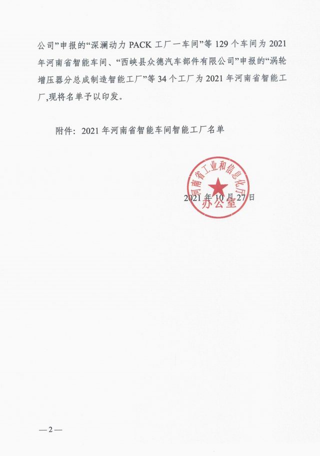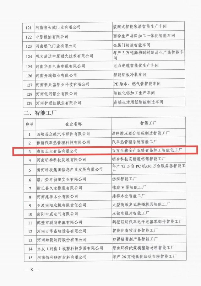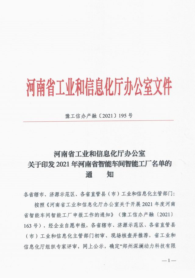 按照《河南省工業(yè)和信息化廳辦公室關(guān)于開展2021年度河南省智能車間智能工廠申報工作的通知》(豫工信辦產(chǎn)融〔2021〕163號),經(jīng)企業(yè)志愿申報、各地工業(yè)和信息化主管部門初審和現(xiàn)場核查、省工業(yè)和信息化廳組織專家評審、網(wǎng)上公示,河南省工業(yè)和信息化廳確定129個智能車間為2021年河南省智能車間、34個智能工廠為2021年河南省智能工廠。2021年10月27日,河南省工業(yè)和信息化廳辦公室下發(fā)文件《河南省工業(yè)和信息化廳辦公室關(guān)于印發(fā)2021年河南省智能車間智能工廠名單的通知》(豫工信辦產(chǎn)融【2021】195號)予以公布。洛陽正大獲評2021年河南省智能工廠!