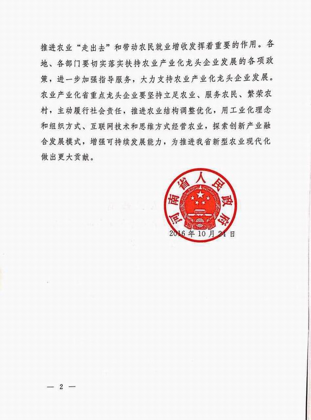農(nóng)業(yè)產(chǎn)業(yè)化省重點(diǎn)龍頭企業(yè)2016.10.24 發(fā)布時(shí)間:2020-01-15來源:洛陽(yáng)正大食品有限公司點(diǎn)擊:14285
