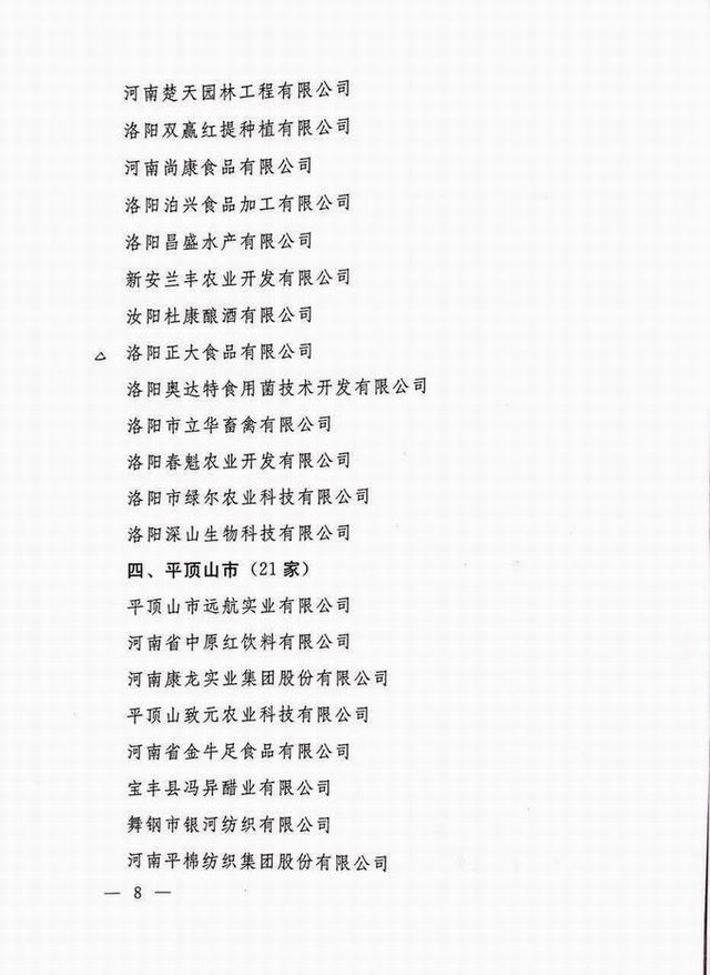 農(nóng)業(yè)產(chǎn)業(yè)化省重點(diǎn)龍頭企業(yè)2016.10.24 發(fā)布時(shí)間:2020-01-15來源:洛陽(yáng)正大食品有限公司點(diǎn)擊:14285 上一篇:出口食品生產(chǎn)企業(yè)備案證明 下一篇:56.河南民營(yíng)企業(yè)現(xiàn)代農(nóng)業(yè)100強(qiáng)